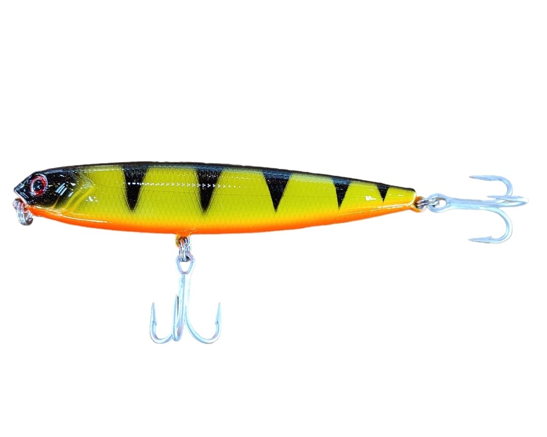 Isca padrão Stick-Zara de grande porte, possui pitão reforçado, garatéias grandes e de alta resistência, para suportar as pancadas dos grandes predadores, tais como o Tucunaré-Açu.
